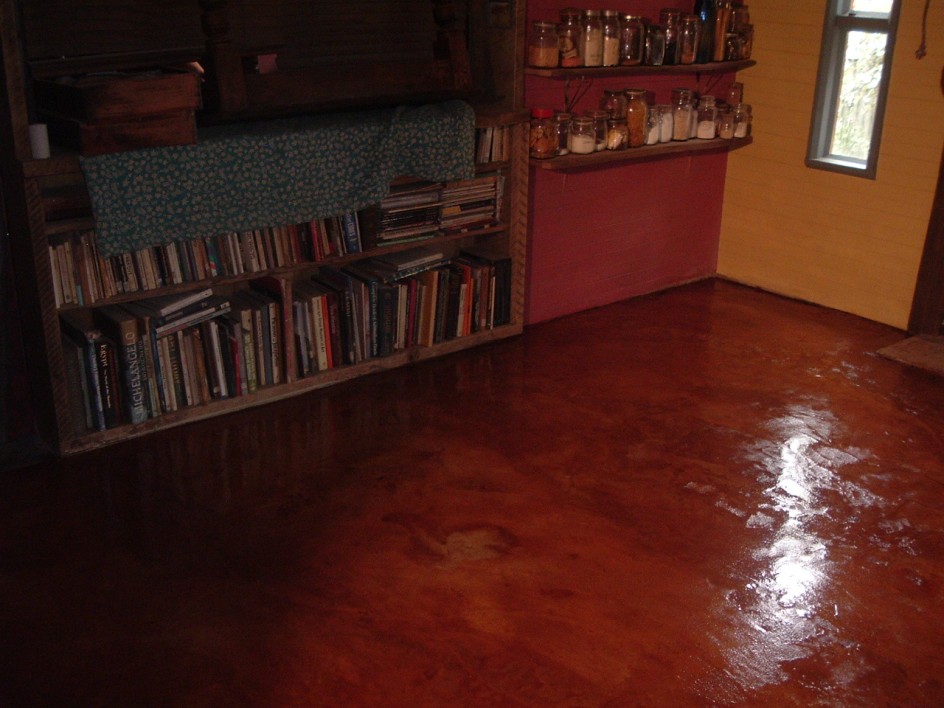 and the stain reacts with the Lime and calcium in the concrete in a way that